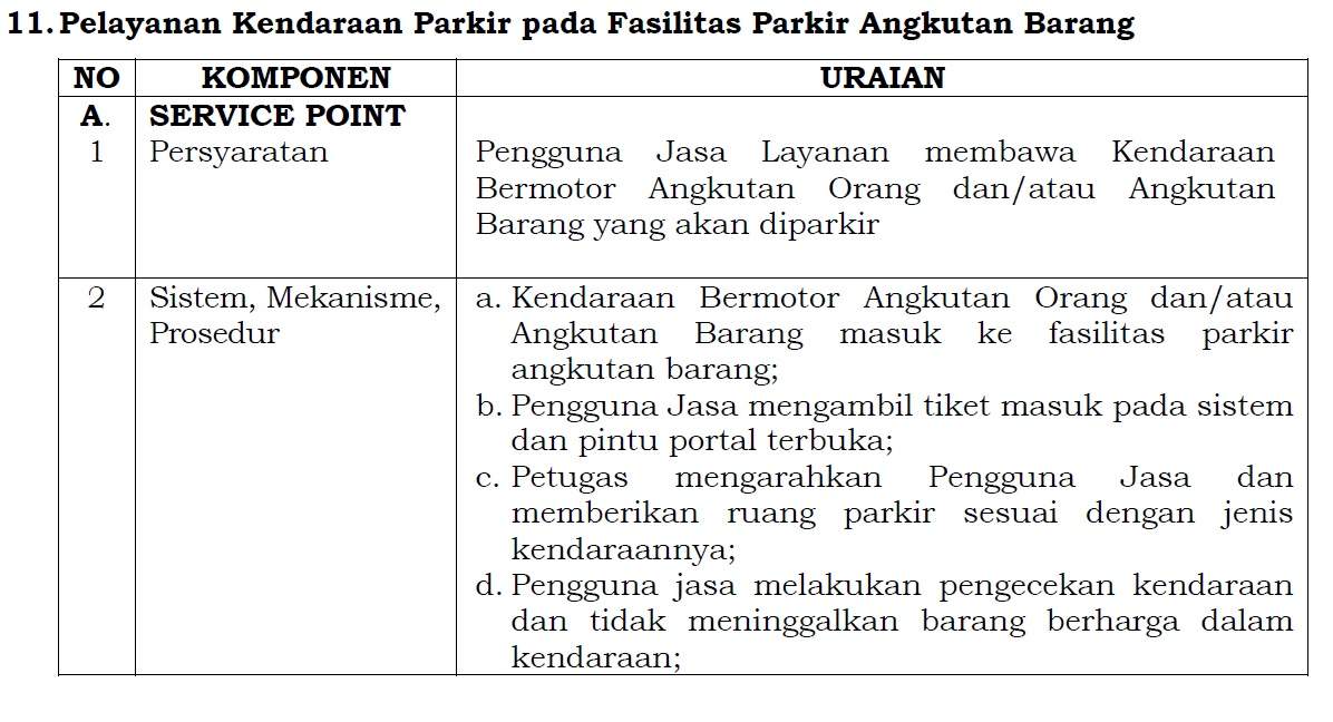 Pelayanan Kendaraan Parkir pada Fasilitas Parkir Angkutan Barang